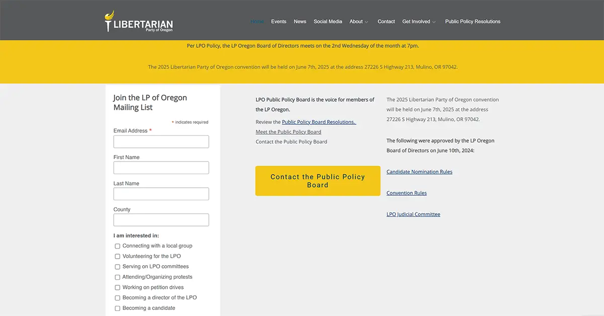 Note that http://www.lp.org/states/Oregon currently does not point to any affiliate web site.